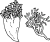 花びら、海藻、マイタケ状 (基部で一つにまとまる) |